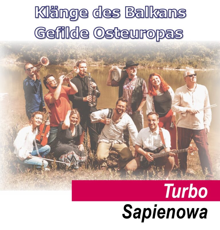 Mit ihrem durchgepeitschten Mix aus Coversongs und Vollgas-Eigenkompositionen reist die Band durch die musikalischen Sphären Osteuropas, die Gefilde des Balkans, in die Welt der Romamusik und zu ihrem ganz eigenen Party-Kosmos. Hier fühlt man die Leidenschaft und spürt den Spaß an der Musik, der die Menschen mitnimmt und der das Hinterfragen unserer kulturellen Wurzeln freudig versüßt. Lieder, wild und kraftvoll, mal melancholisch und mal schrill, machen Turbo Sapienowa zur außergewöhnlichen Band, deren Sound ins Ohr und tief ins Tanzbein geht.